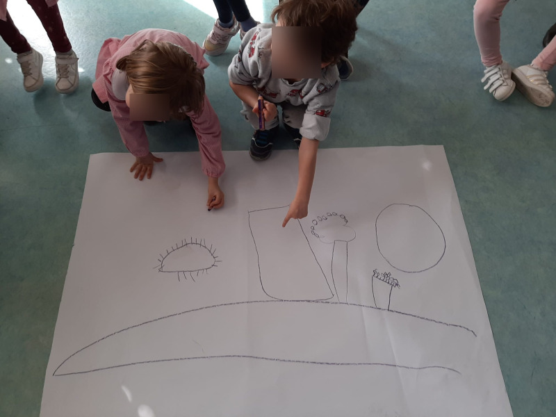 Dalla narrazione di Harold e la matita viola, i bambini sono stati stimolati a ragionare e a creare un cartellone di gruppo dove ognuno ha avuto  spazio di disegnare e di realizzare un piccolo capolavoro di riflessione sul donare e sul ricevere, insomma Un disegno lungo… un viaggio!